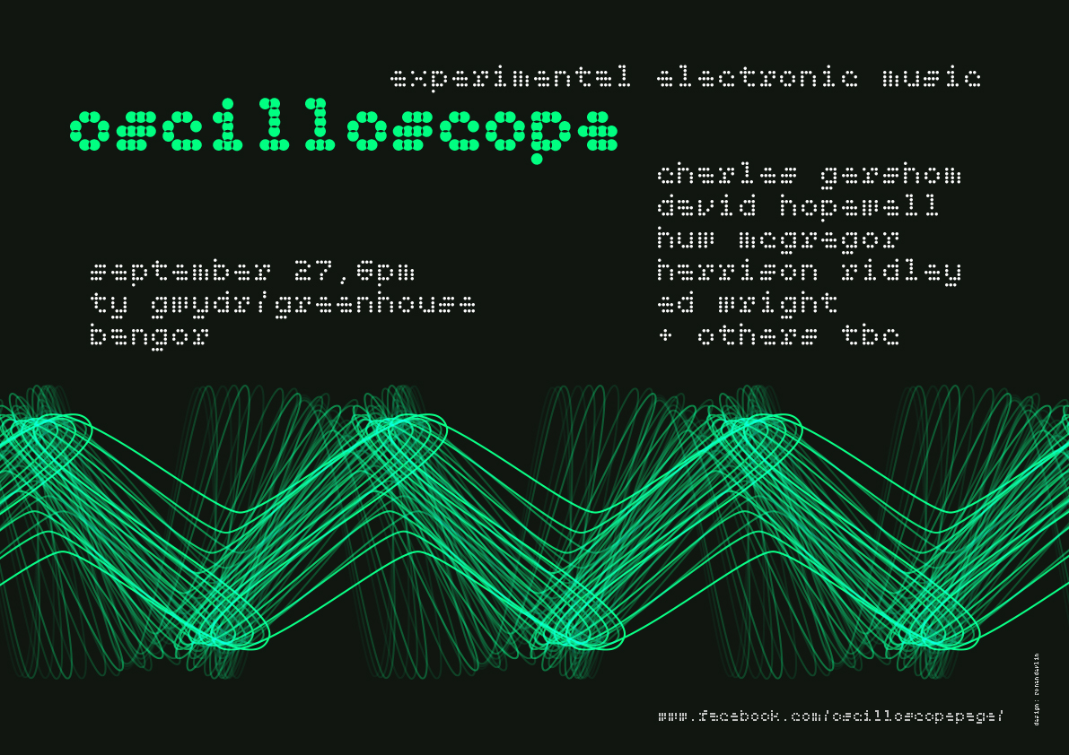 OscilloScope is a monthly event based in Bangor (North Wales) focusing on electronic experimental music.